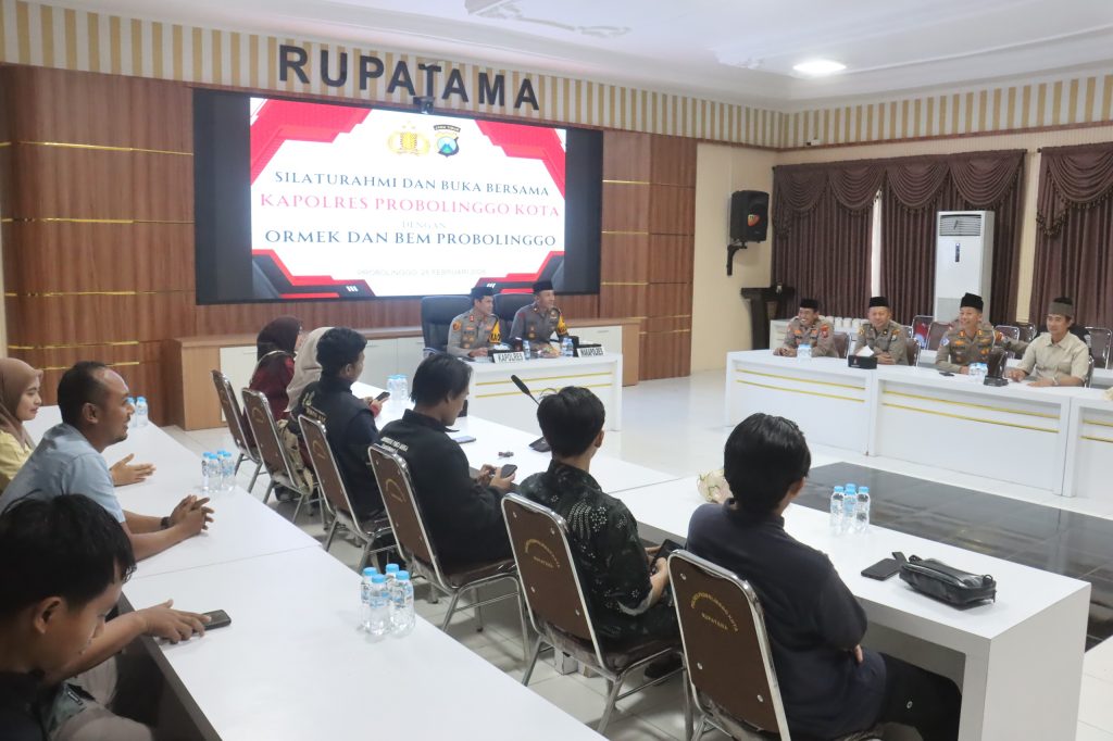 Kota Probolinggo , Globalnext.id – Kapolres Probolinggo Kota AKBP Rico Yumasri S.I.K., M.I.K. menggelar buka puasa bersama organisasi kemahasiswaan (Ormek) dan Badan Eksekutif Mahasiswa (BEM) Probolinggo di Ruang Rupatama Mapolres Probolinggo Kota, Kamis (26/2/2026).