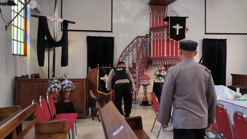 Selama proses pemeriksaan berlangsung, petugas juga melakukan koordinasi dengan pihak gereja guna memastikan seluruh rangkaian kegiatan pengamanan berjalan lancar.