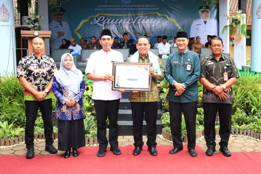 Foto : Wali Kota dr. Aminuddin Bersama jajaran pejabat dan pemangku kepentingan pendidikan se-Kota Probolinggo, Resmi Meluncurkan Program Gerakan Sekolah Mengaji dan Gerakan Sekolah Berbagi di SMP Negeri 8, Jumat (27/2/2026)