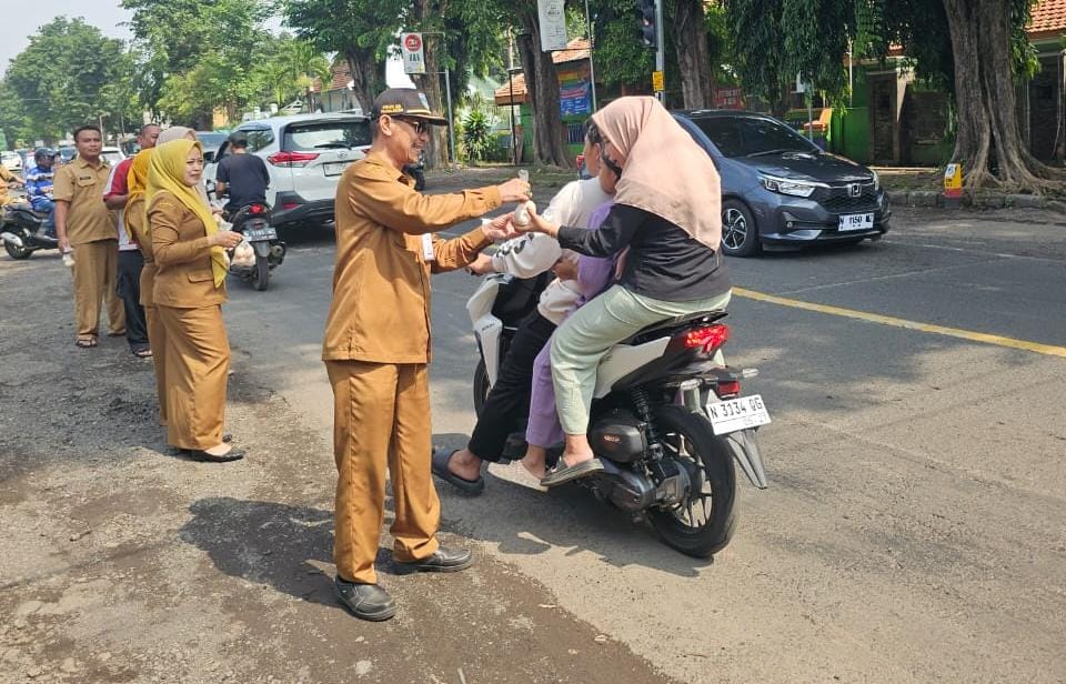 Foto : Sekretaris Diperta Kabupaten Probolinggo Mahmud turut serta dalam pembagian telur ayam rebus gratis bagi pengguna jalan depan MPP Kabupaten Probolinggo, Selasa (3/3/2026)
