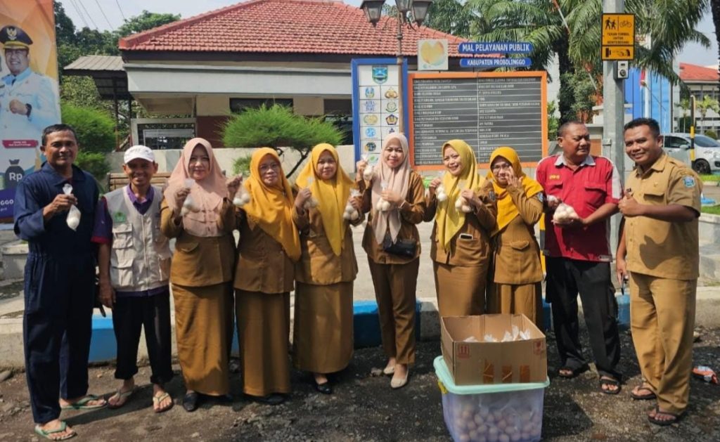 Foto : Kabid Keswan dan Kesmavet Diperta Kabupaten Probolinggo drh. Nikolas Nuryulianto bersama jajaran pegawai dalam pembagian ratusan telur ayam rebus gratis
